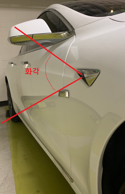 옆에서 보면 테슬라 카메라는 대략 이런 화각이고