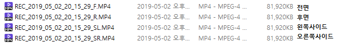 (1분 녹화에 전면/후면/왼쪽사이드/오른쪽사이드 각 82메가씩)