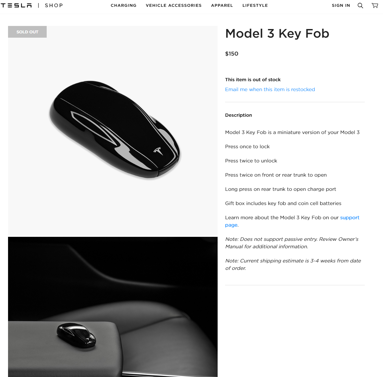 현재 모델3 전용 차키는 출시 전이라 SOLD OUT 상태입니다.