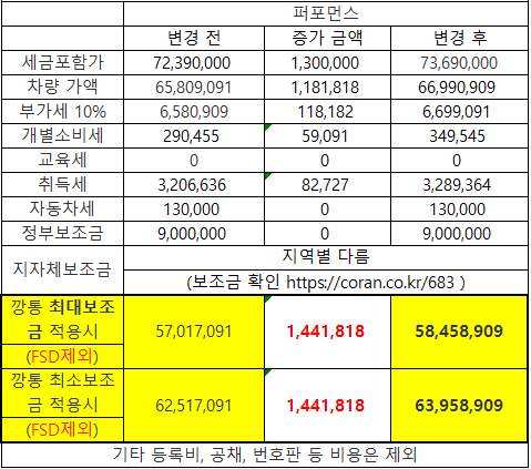 2019년 8월 24일부로 모든 트림의 가격이 130만원씩 인상되었습니다.