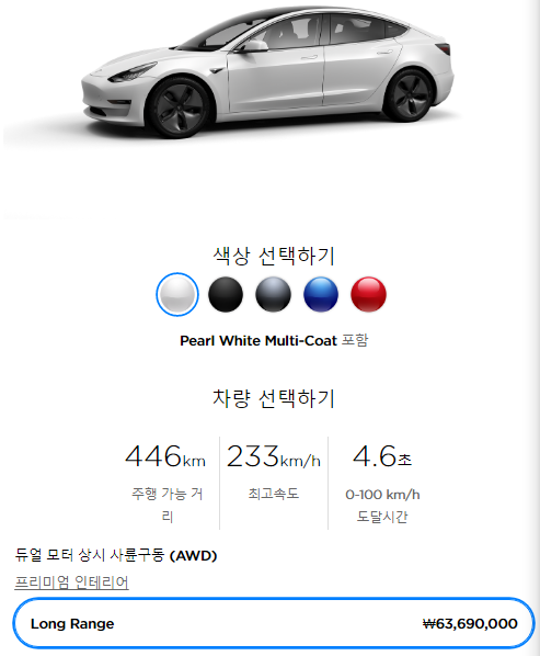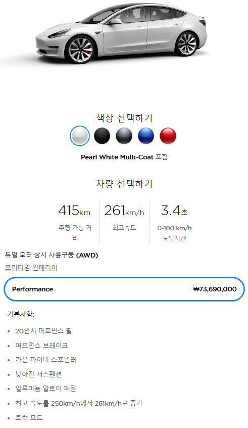 --------------------------------------------테슬라 모델3의 최고 트림인 퍼포먼스와 롱레인지 간단 비교입니다.
