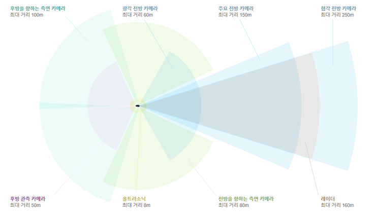 추후 완전자율주행 기능이 업데이트되면 모든 센서를 사용하여 구현 가능하도록 모든 센서가 미리 탑재되어있습니다.