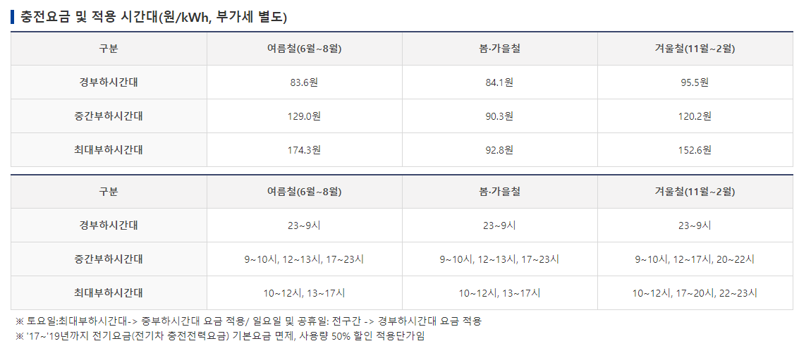 요금 테이블을 보면 경부하시간 기준으로 그렇~게 비싸진 않은데, 그렇~게 싸지도 않은 미묘한 가격입니다.