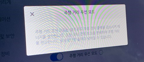 참고로 주행 거리 우선 모드는 공조기 등의 출력을 감소시켜서 에너지 절약에 도움을 주는 기능도 있으므로