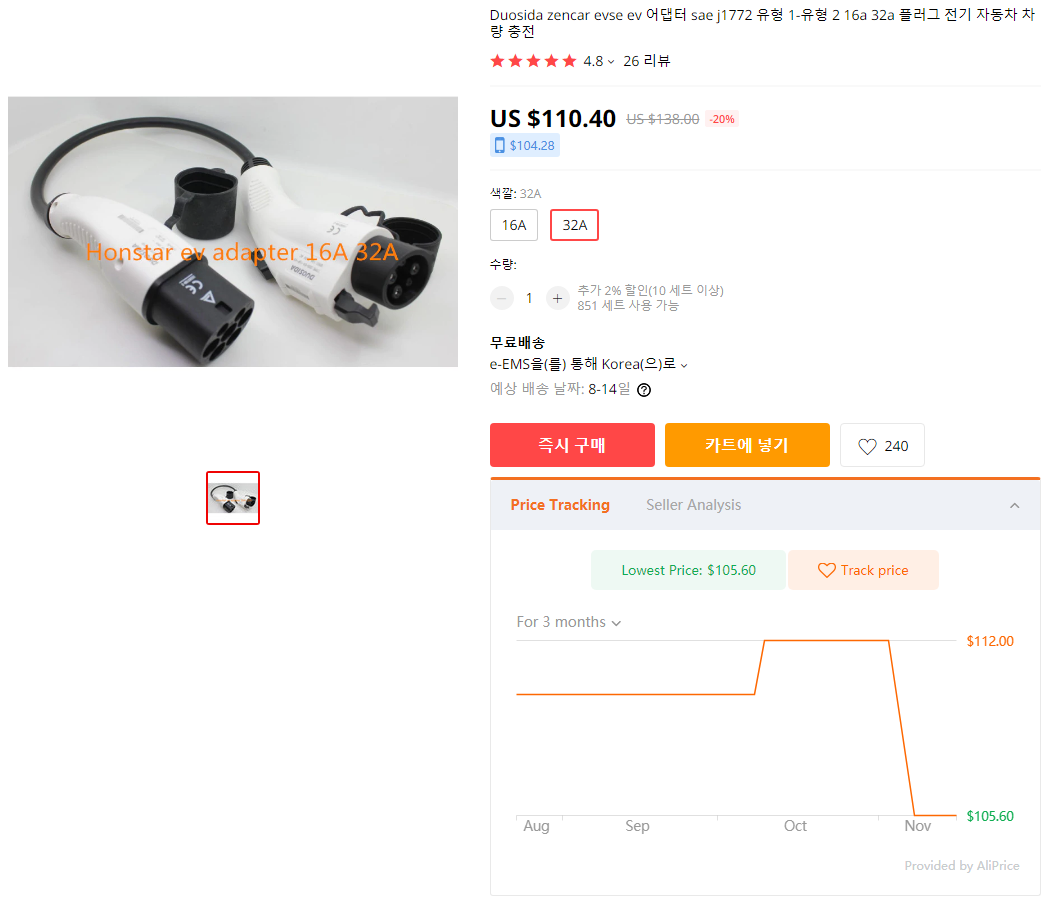 구매할 때는 32A로 구매해야 7kW까지 속도가 나옵니다.
