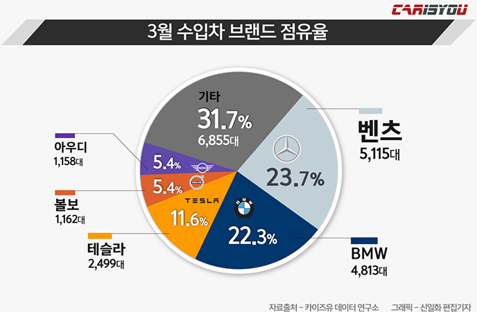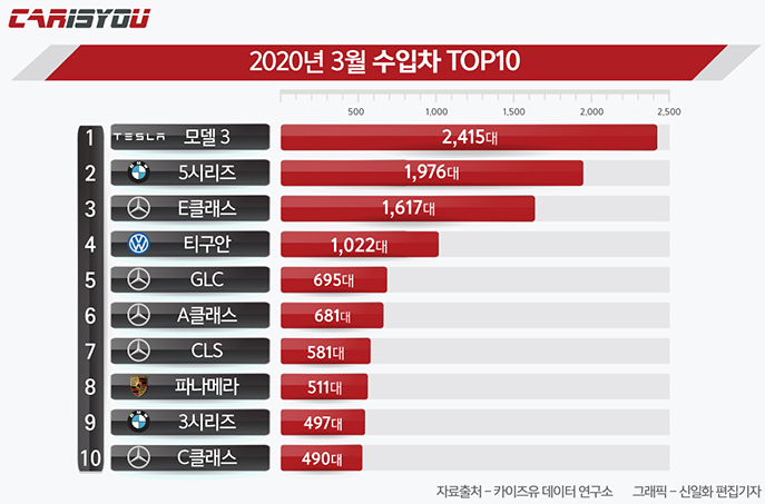 그 덕에 모델3가 3월 수입차 1위를 찍게 되었네요!