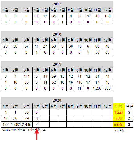 모델S는 0대고, 나머지도 바닥 수준입니다.