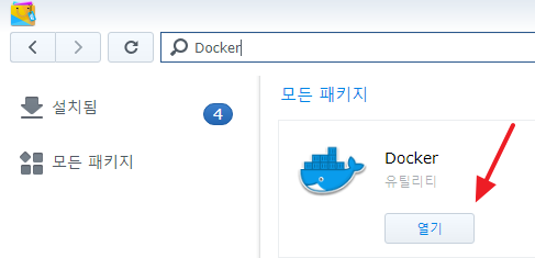 done이 뜨면 제대로 실행되고 있는지 확인하기 위해서 시놀로지 데쉬보드에서 Docker를 클릭해줍니다.