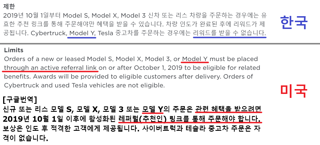 하지만, 이번에 바뀐 미국 레퍼럴 정책을 보면 모델 Y도 레퍼럴 보상 대상에 들어가게 되는 걸 미리 알 수 있습니다.