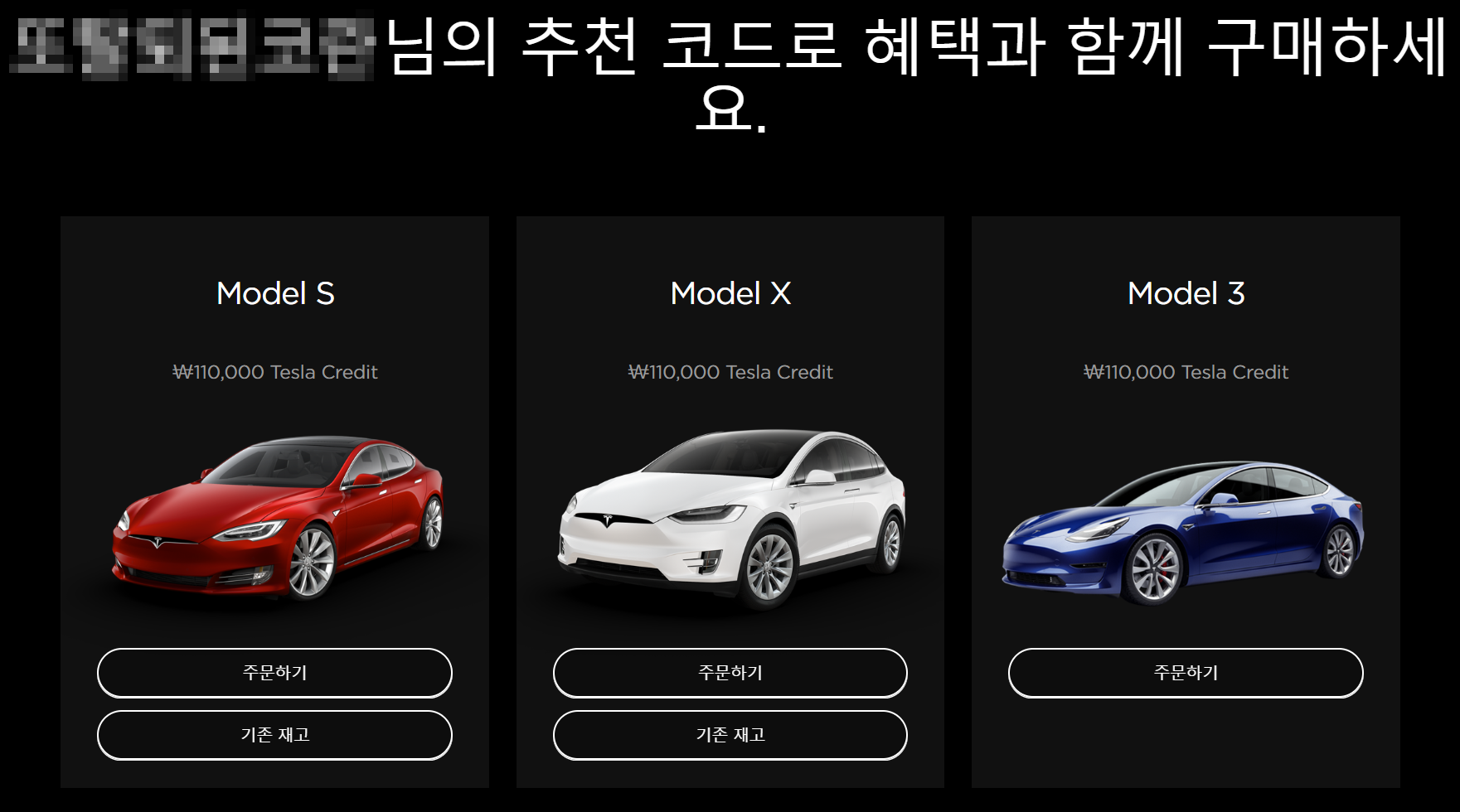 모델S 오너인 제 추천 코드를 사용하여 Tesla 신차 구매 시 서비스 및 액세서리 구매에 사용할 수 있는 ₩110,000 크레딧을 받을 수 있습니다. 레퍼럴 코드 사용 후에 비밀 덧글로 영문 성함을 보내주시면 제대로 등록되어있는지 확인해드리겠습니다.