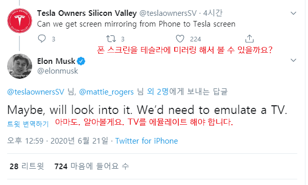 마지막으로 폰 화면을 테슬라 스크린에 미러링하는 기능에 대해선 알아보겠다고 하면서