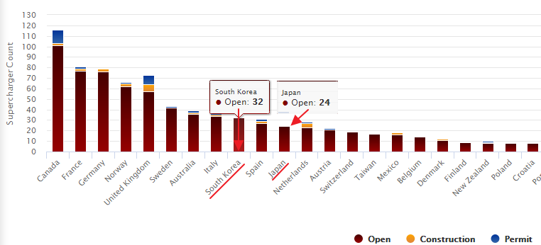 놀라운 점은, 전세계 수퍼차저 설치 순위를 보면 대한민국은 11번째로 많은 수퍼차저를 보유하고 있습니다.