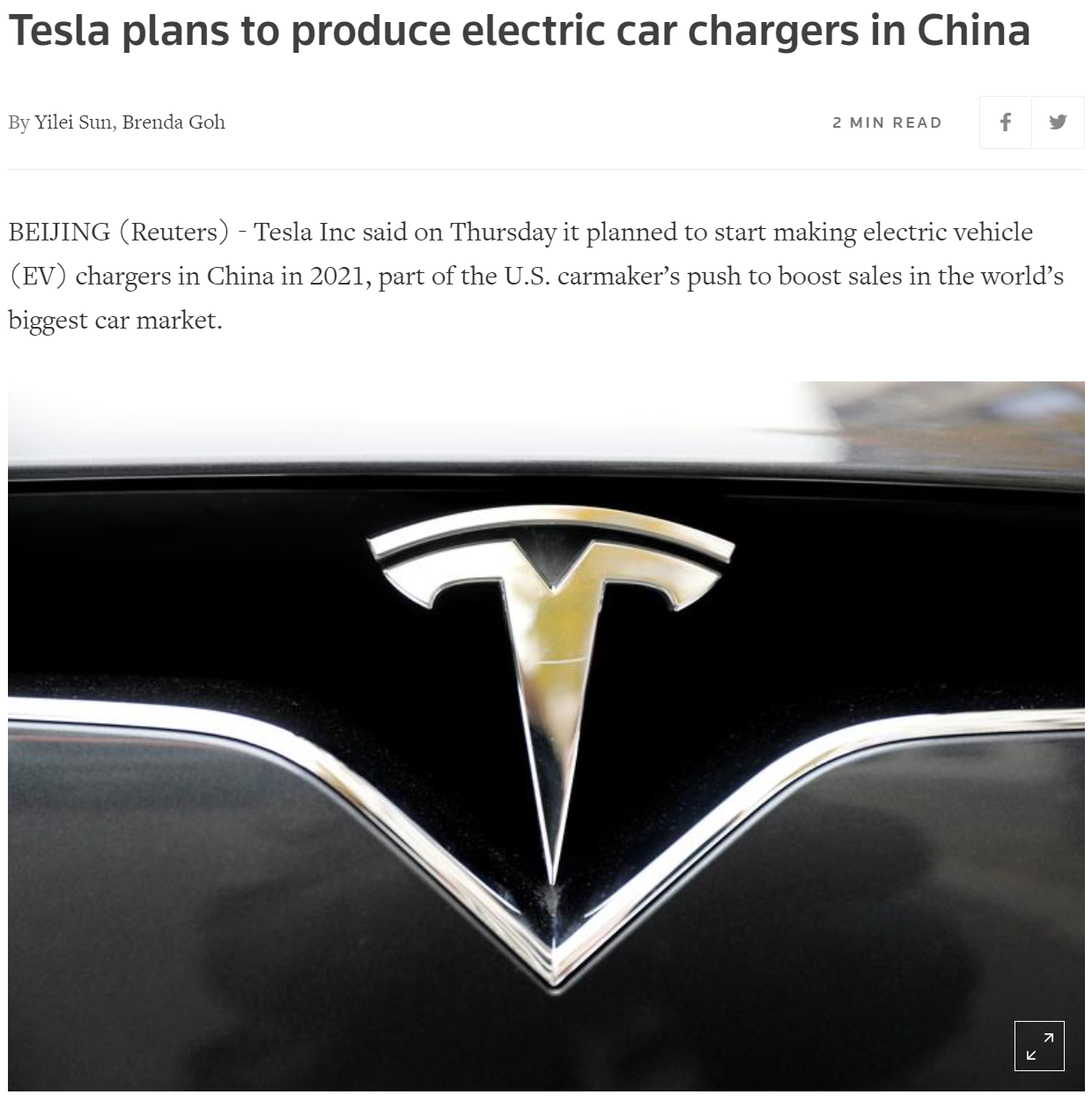로이터 통신에 의하면, 테슬라가 이제 중국에서 슈퍼차져 스테이션을 생산할 계획이라고 합니다.