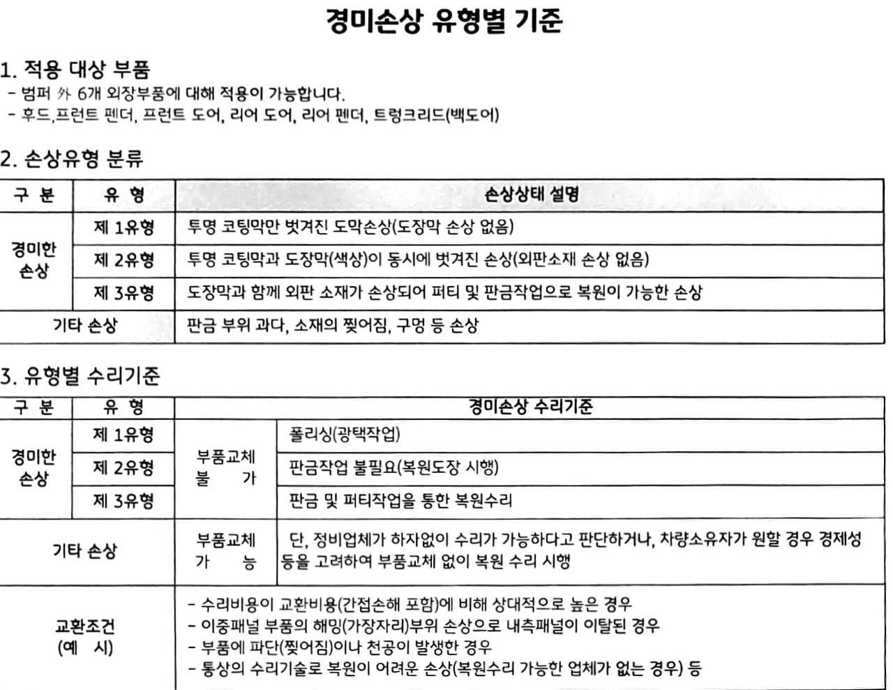(문콕에 의한 단순 도장까짐은 경미손상 제2유형에 해당하여 복원보수도장 진행)