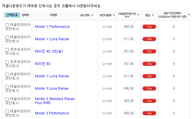 그리고 오늘(1월 13일) 드디어 나머지 '퍼포먼스' 트림의 주행거리가 448km로 인증이 났습니다.