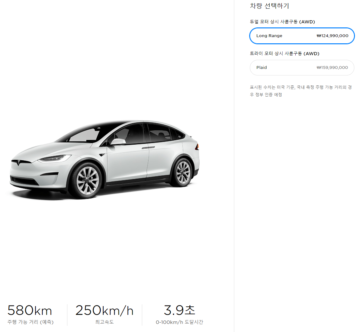신기한 것은 모델S Plaid와 모델X Plaid의 가격이 159,990,000원으로 동일합니다.