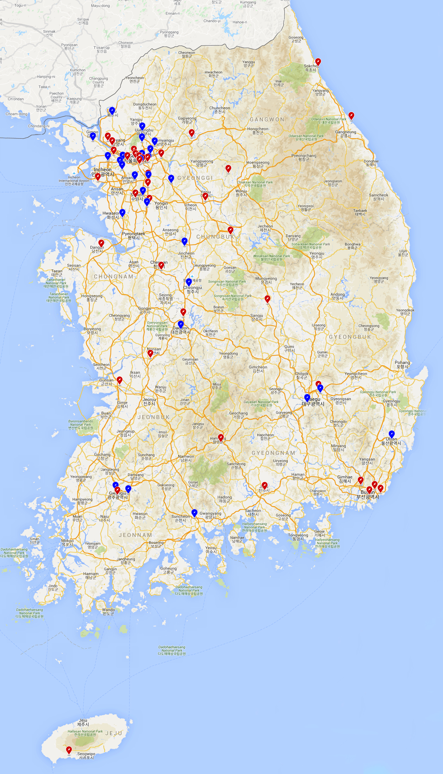 위치가 확실히 정해지지 않은 곳들이 대부분이라 임의로 그 지역에 핀을 세워둔 상태입니다.
