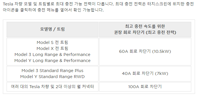 하지만 출력이 2세대보다 낮아졌더라도, 현재 국내 출고되는 모든 테슬라 S,3,X,Y 는 최대 10.5kW까지만 가능하므로