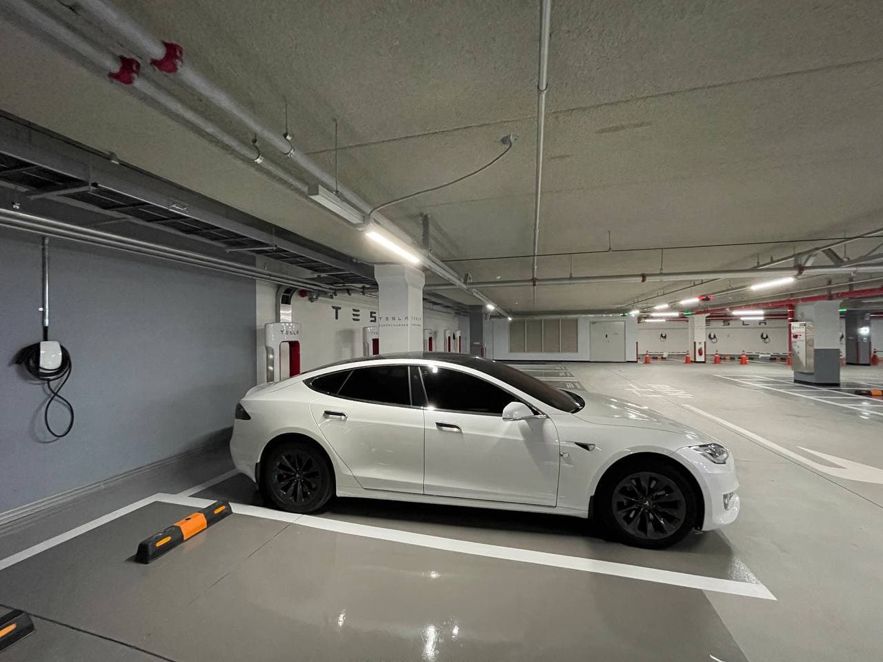 지하 4층까지 오면 TESLA SUPERCHARGER 안내가 붙어있습니다.