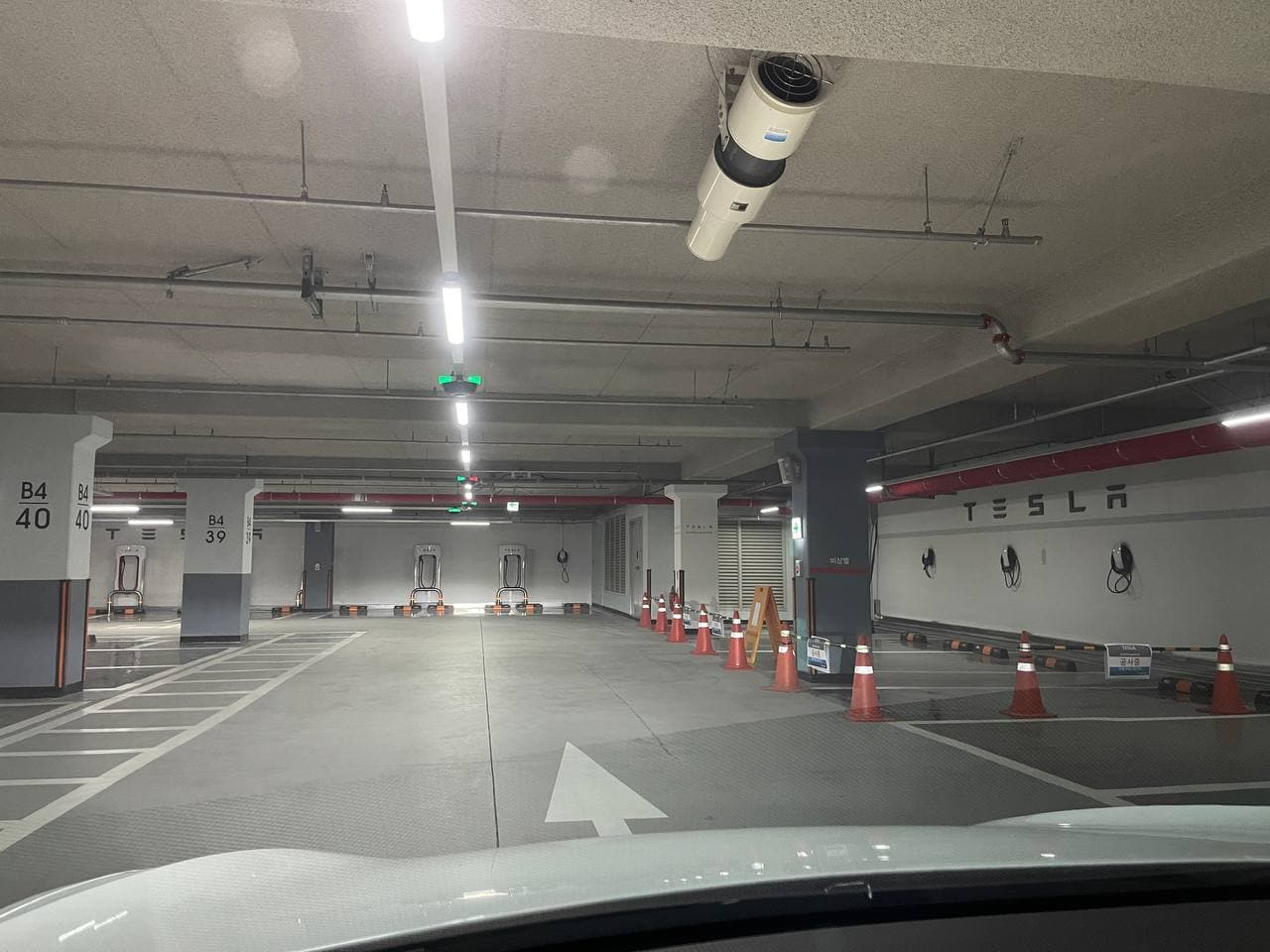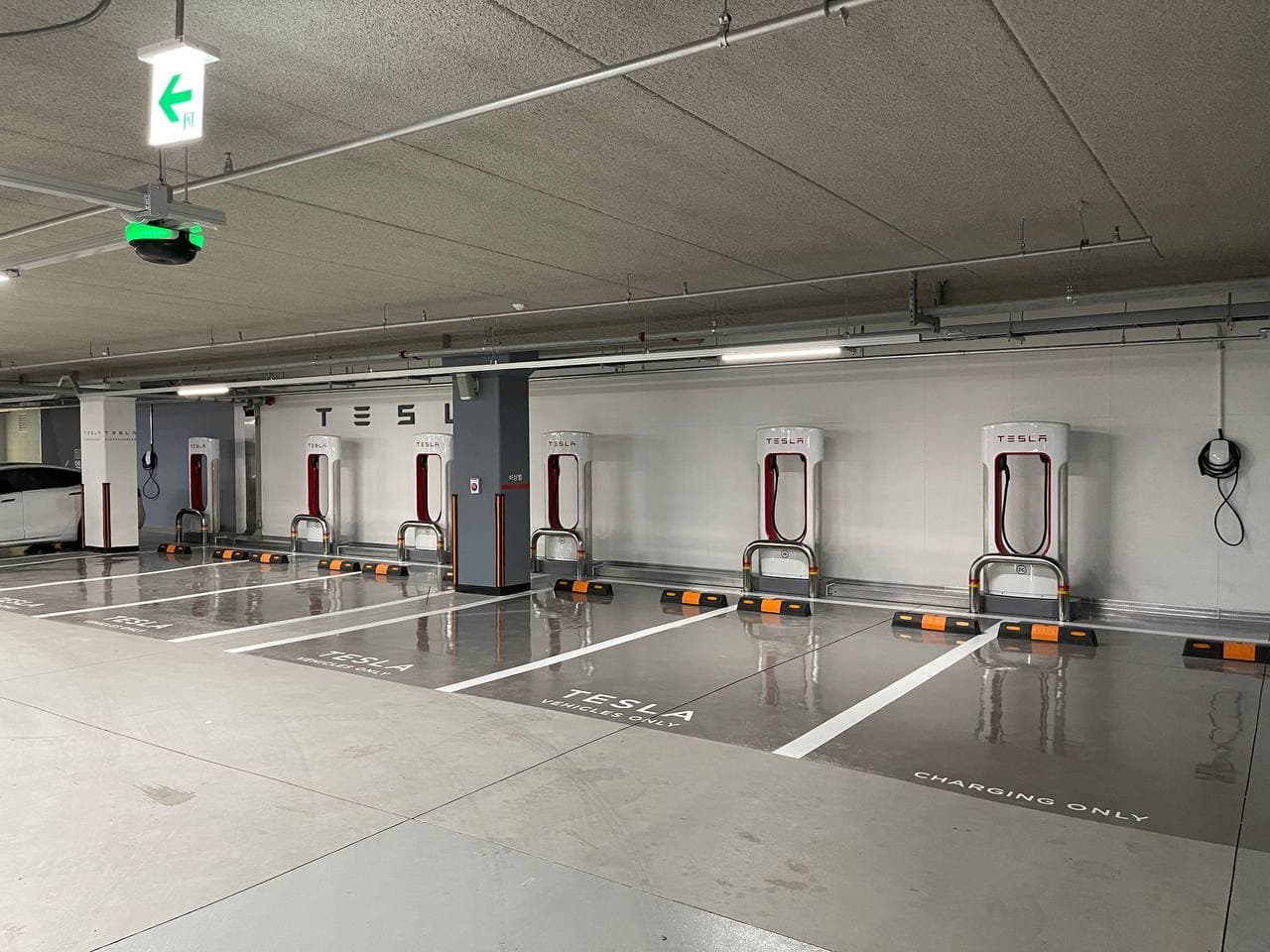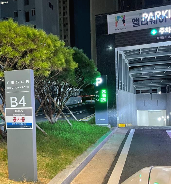 지하 4층까지 오면 TESLA SUPERCHARGER 안내가 붙어있습니다.