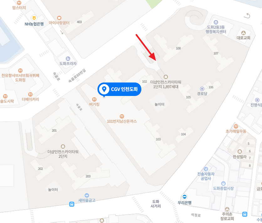현재 네비게이션에는 'CGV 인천도화' 를 찍고 가면 됩니다.