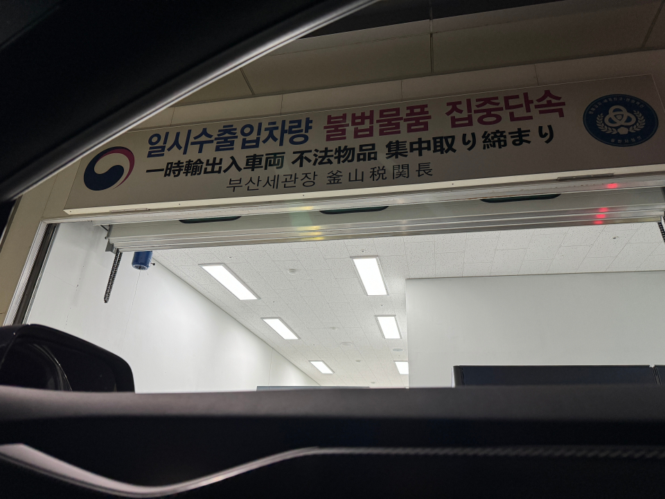 차를 내려서 바로 도로를 달리는 게 아니라 세관 검사 과정을 갖습니다.