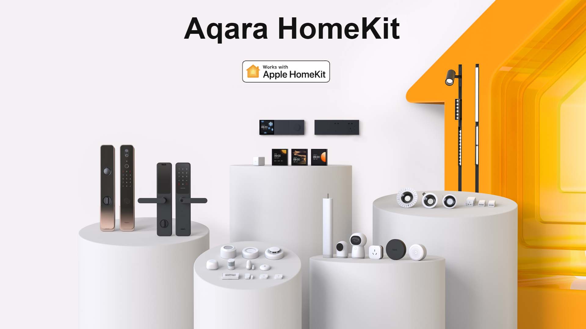스위치, 콘센트, 도어락, 초인종(+카메라), 조명(천장등, 마그넷 레일등, 다운라이트, LED스트립 등등), 카메라, 온도조절기, 전동 커튼/블라인드, 건조대, 베스히터(휴젠트 비슷), 수건걸이, 비데, 변기, 각종 센서 (문열림, 인체감지, 재실, 온습도, 침수, 연기감지, 천연가스 경보기, 공기질, TVOC, 광센서 등등)......