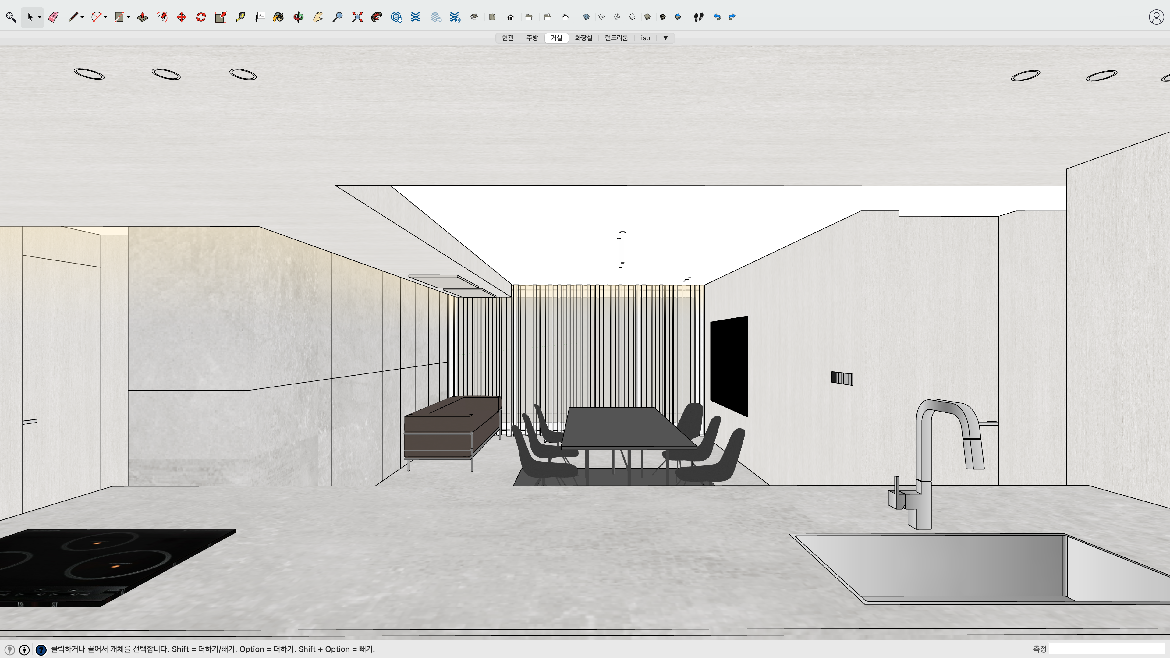다음 미팅 때는 무난한 레이아웃, 주방/거실 치환 레이아웃, 등등 몇가지 시안을 준비해주시기로 했습니다.