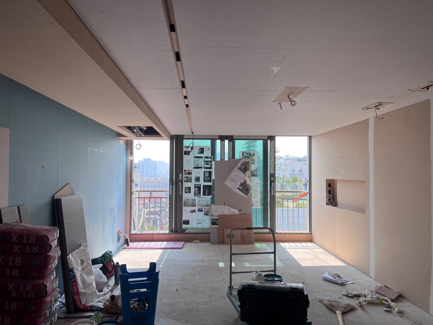 다 철거된 후 창호 설치 전까지 설비 - 미장 - 양생이 진행되었습니다.