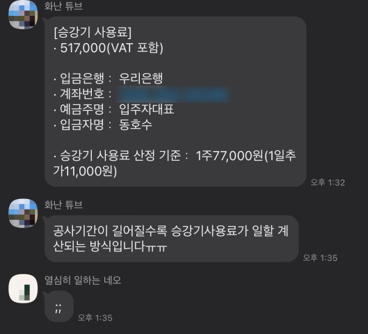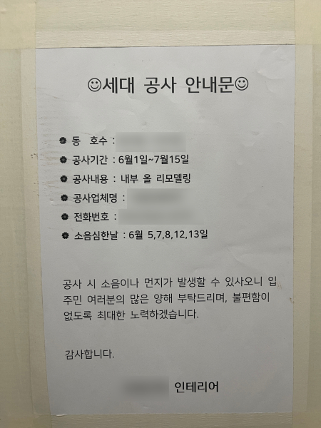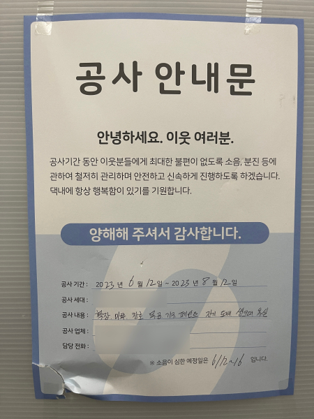 인테리어 공사 중 불편하실 분들이 계실테니 어쩔 수 없다 생각되긴 했습니다.