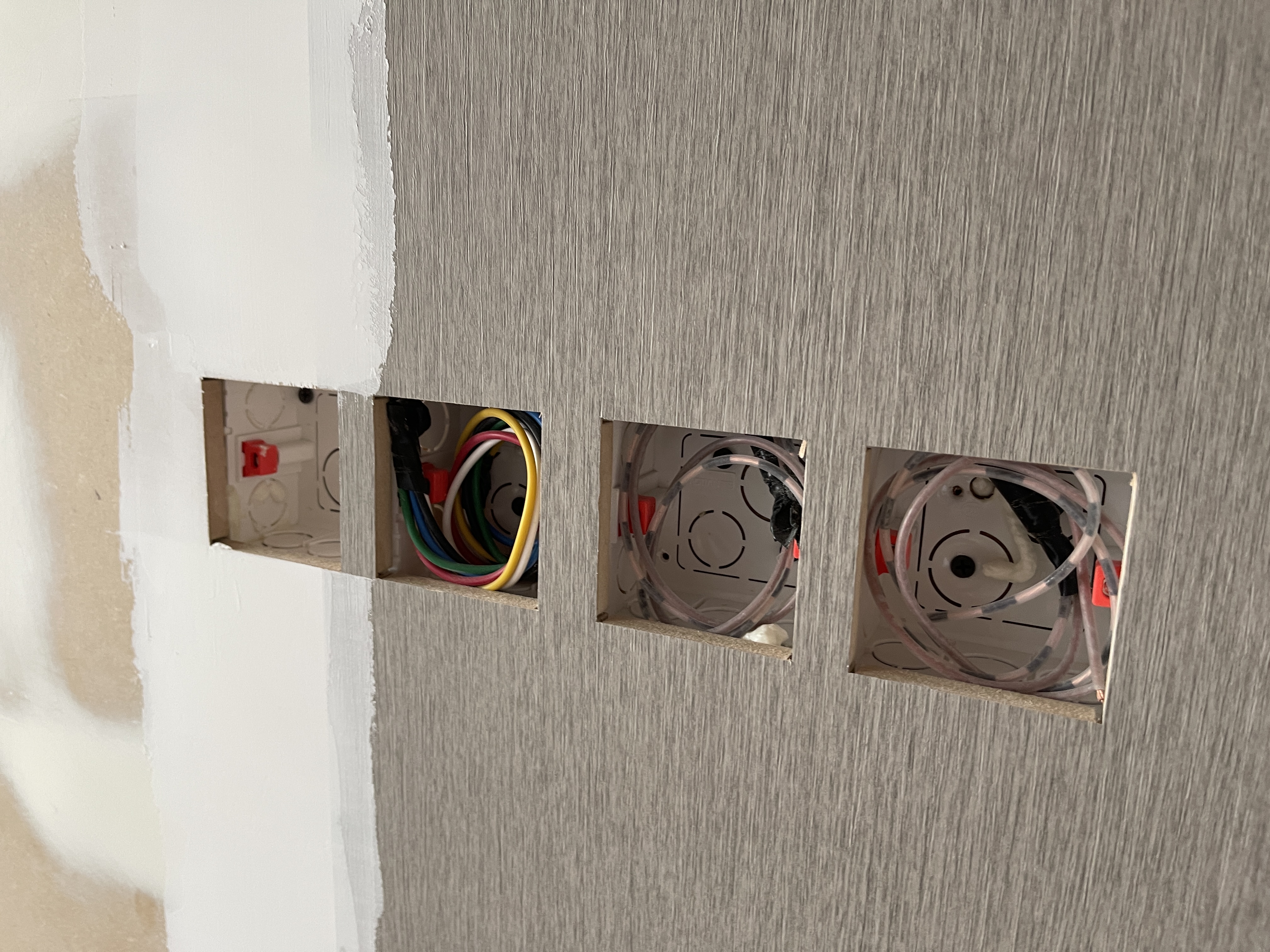 다행히 스위치 복스는 목공 마감 전에 설치가 되었습니다.