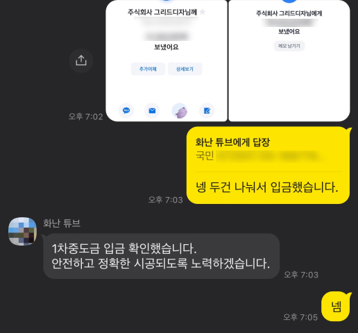 예~전 어머니께서 인테리어 공사를 맡기셨을때는 그냥 전화나 문자로 연락을 주고 받았던 것 같은데