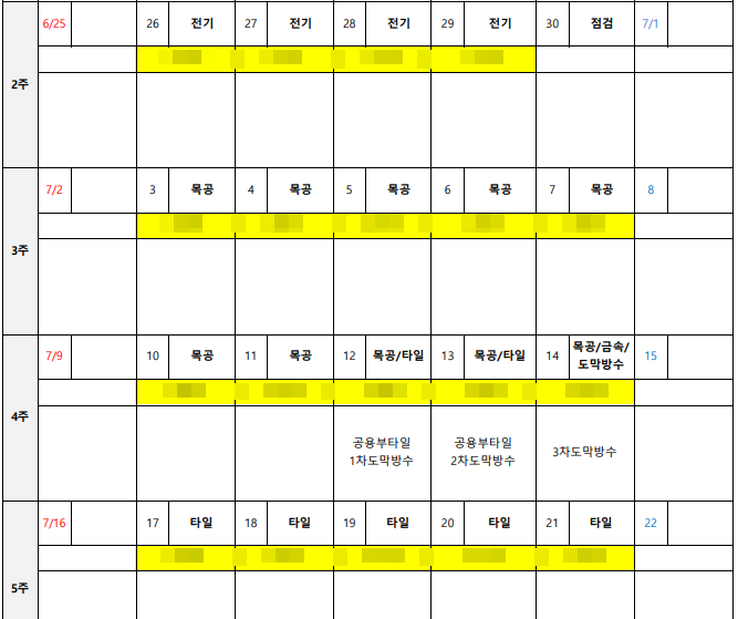 목공작업이 들어가는 곳이 많아서 공사 일정상 10일 정도가 배분되었습니다.
