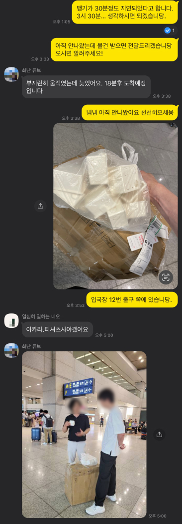 마침 지나가시는 길이라고 공항으로 오셔서 받아가셨습니다.
