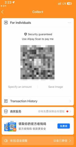 일반적인 알리페이 QR코드가 아니라, 좀 복잡하게 생긴 QR코드를 줍니다.