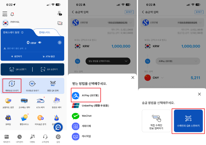 중국 상인이 보낸 QR코드를 스캔합니다, 그리고 결제 금액을 입력하면 끝입니다.