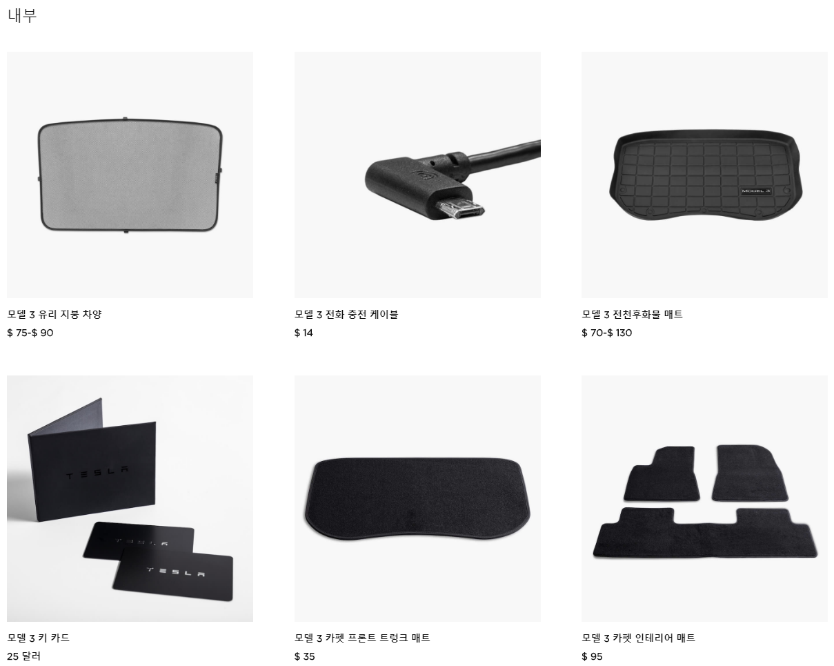 대충 미국 쪽 모델3 물품과 비교하시어 한화로 얼마정도 되겠구나~ 계산하시는데 참고하시면 될 것 같습니다.
