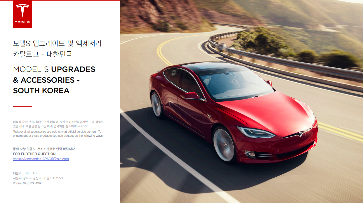한국 테슬라 모델S 기준 업그레이드 및 액세서리 카탈로그입니다.