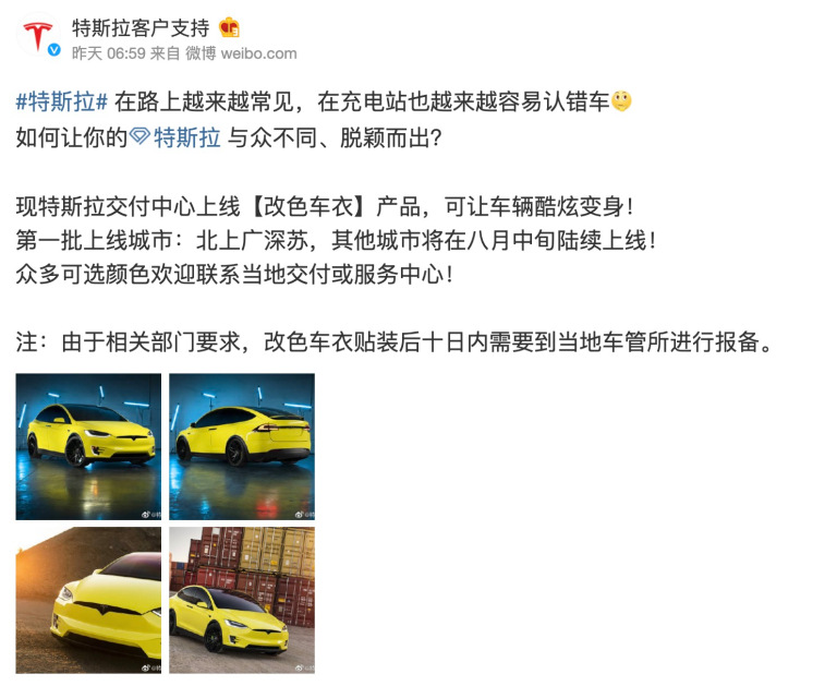 아래는 공식 테슬라 중국 웨이보 계정의 발표 내용입니다.