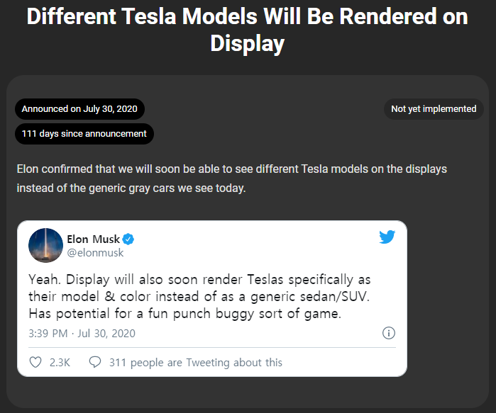 (출처 : www.notateslaapp.com/software-updates/upcoming-features )