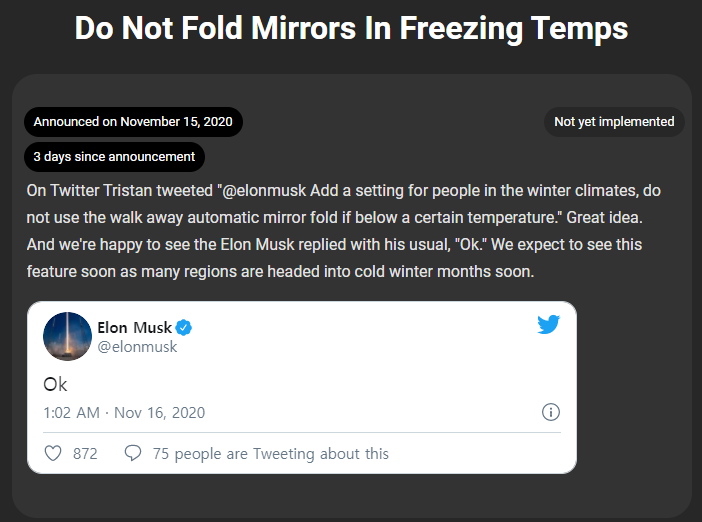 이제부터, 엘론 머스크가 트위터에서 말한 테슬라 업데이트 검토 기능들을 소개합니다 :)