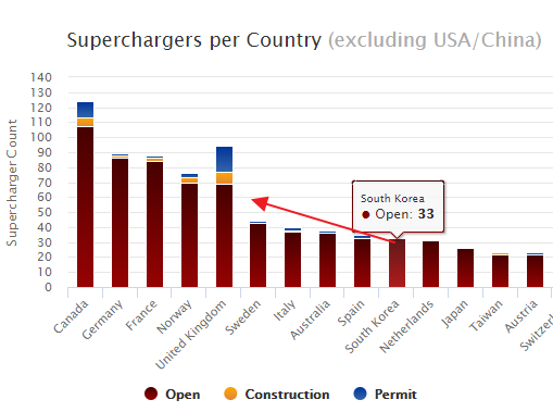 순식간에 수퍼차저 60개소를 보유한 영국 다음의 6위 국가가 됩니다.