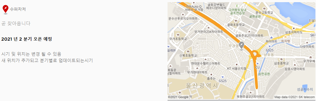 안타깝지만 2020년에 계획했던 '울진' 과 '의정부' 수퍼차저는 2021년 계획에서 사라졌습니다..