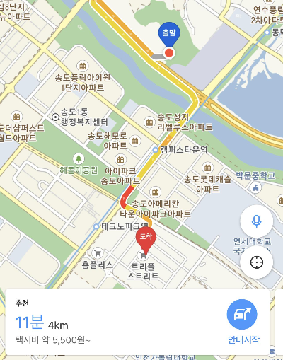 실제로 위치도 송도 수퍼차저와 차로 10분 거리밖에 안떨어져있습니다.