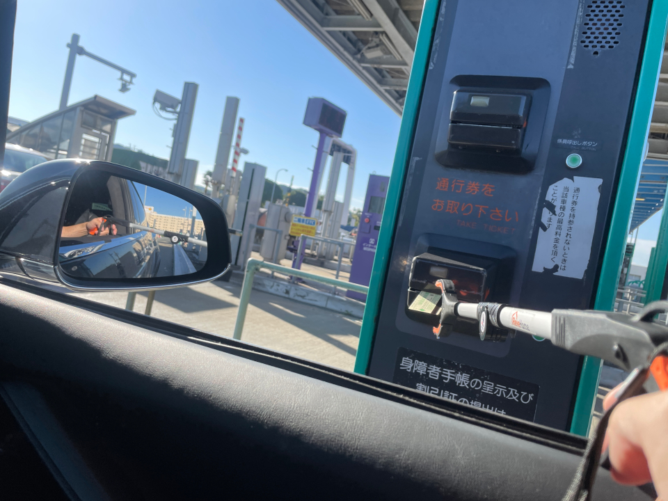 일본은 우리나라와 주행방향이 반대이기 때문에 통행권 발급 기계도 반대쪽에 있습니다.