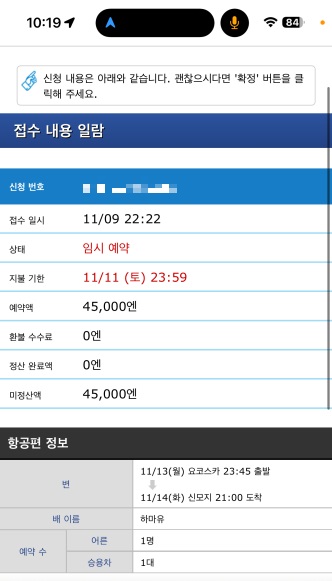 운전자 1인 이등실 요금 포함 총 45000엔! 한화 약 39만원입니다.