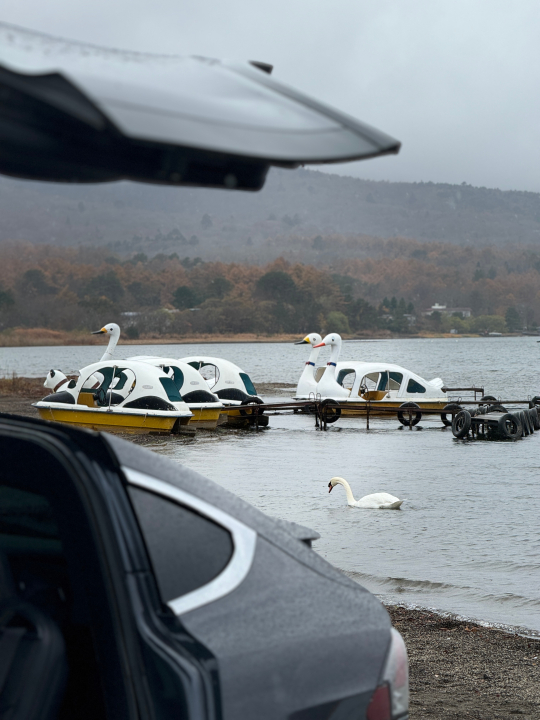 이렇게 후지산을 배경으로 호수 앞에서 사진을 찍으려고 했는데....