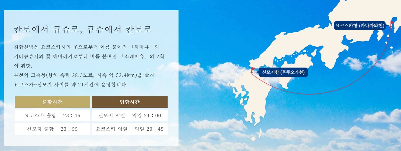 도쿄 요코스카항에서 규슈 신모지항으로 가는 카페리가 있었습니다.