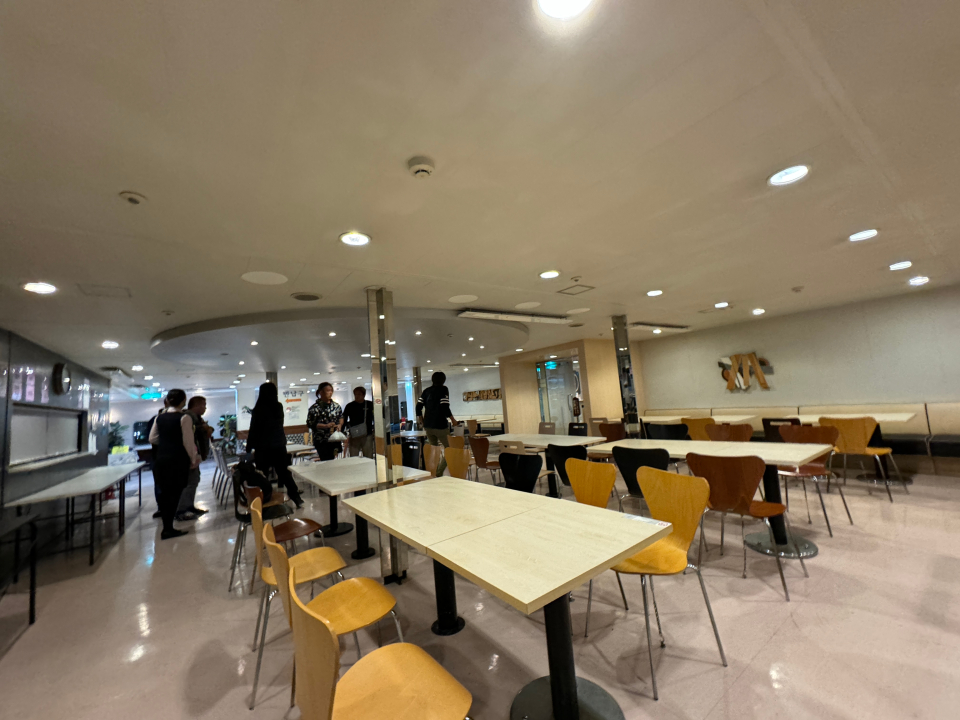 배가 출발할 쯤이면, 배 내부 식당에서 식사가 가능해집니다.
