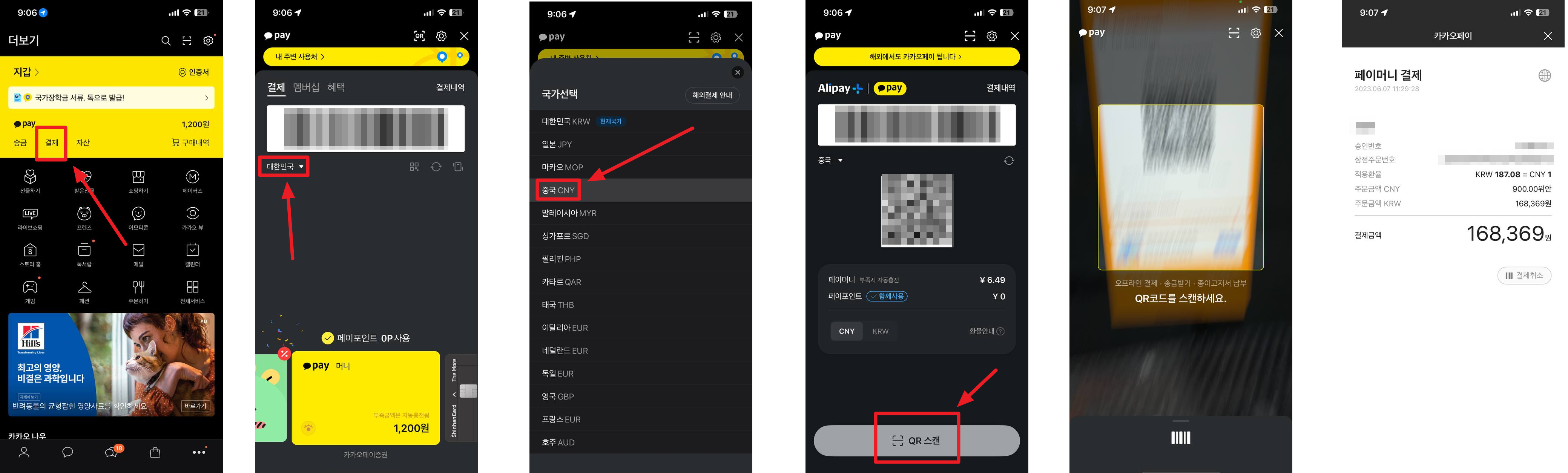 카카오페이는 중국의 Alipay와 연동이 되어있어서 해외에서도 사용이 가능합니다.